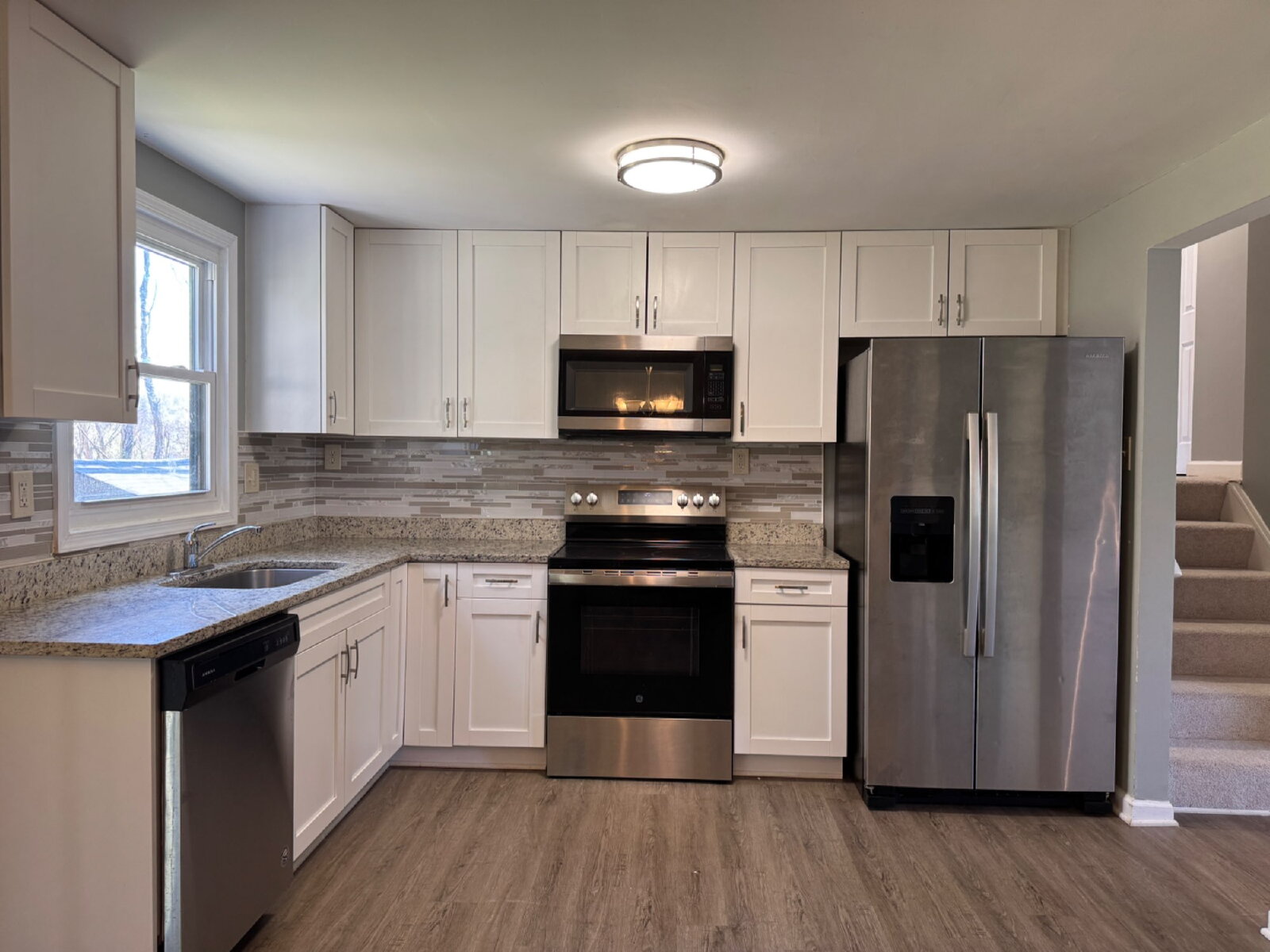 Step into this beautifully renovated split-level single-family home 3-bedroom & 1.5-bathroom home features a bright and modern kitchen complete with granite countertops and stainless-steel appliances—ideal for both everyday living and entertaining.