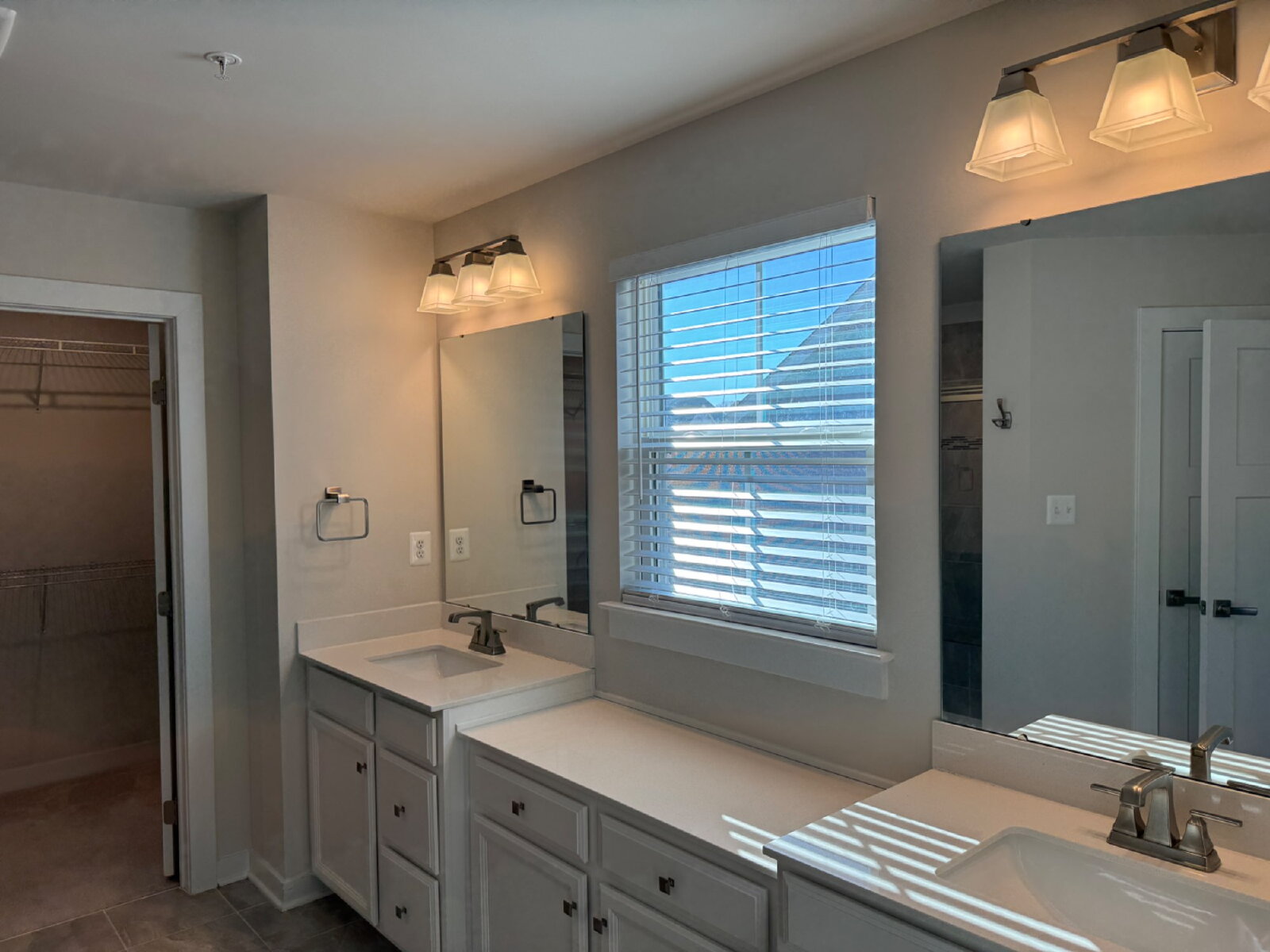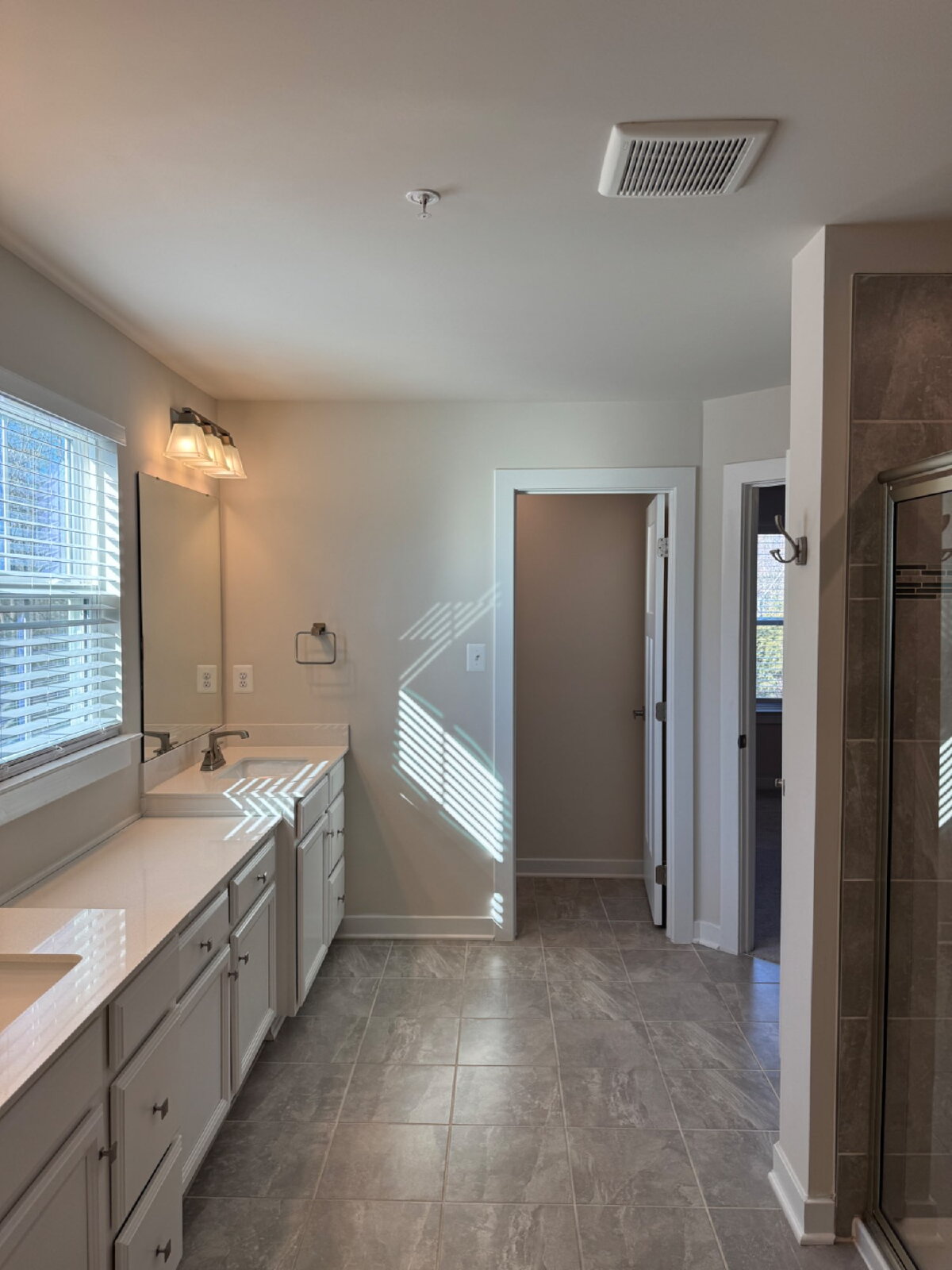 Full hallway bathroom with double dual sink