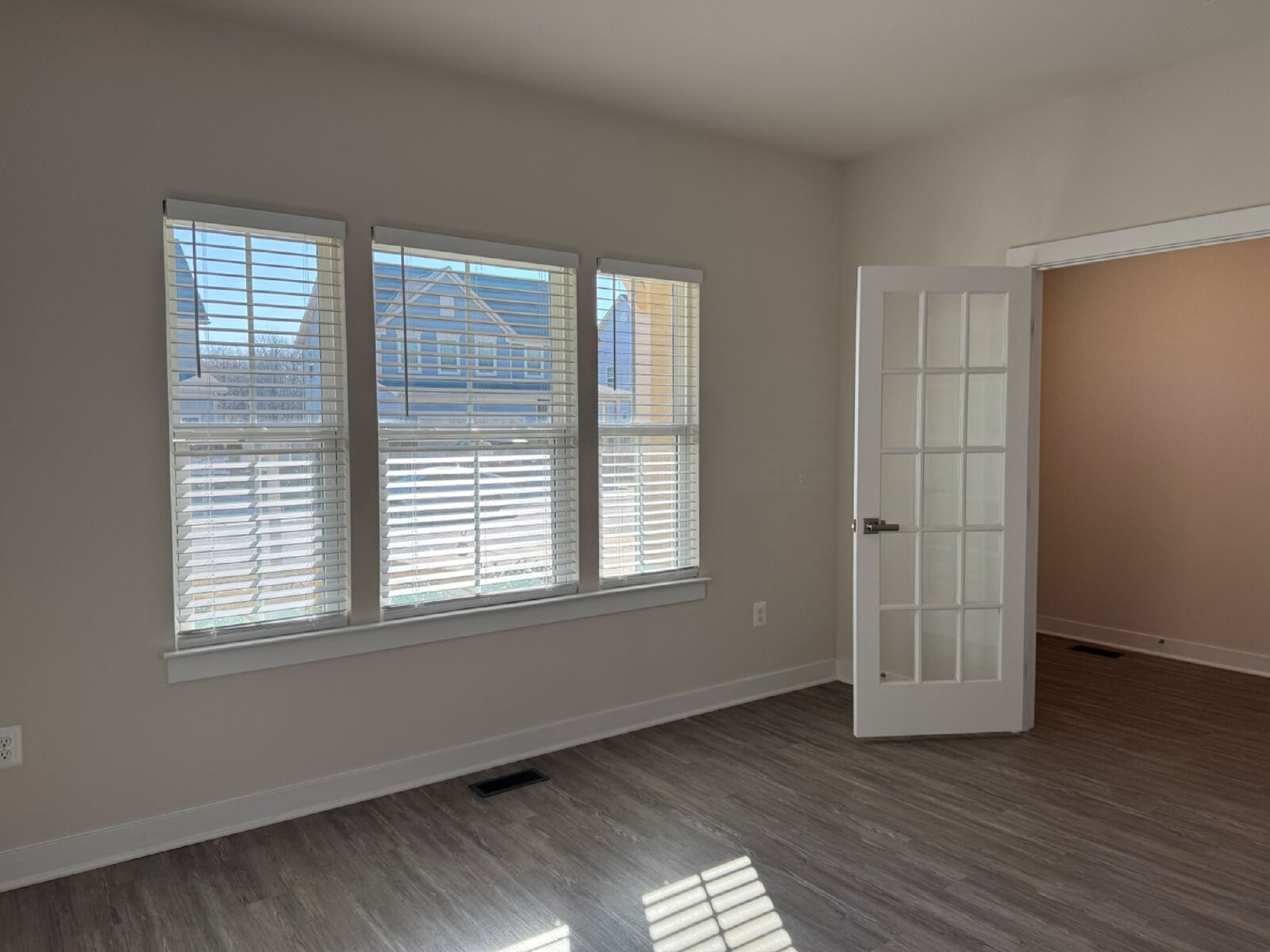 Two flexible rooms with private doors may be used for formal dining, office, etc.