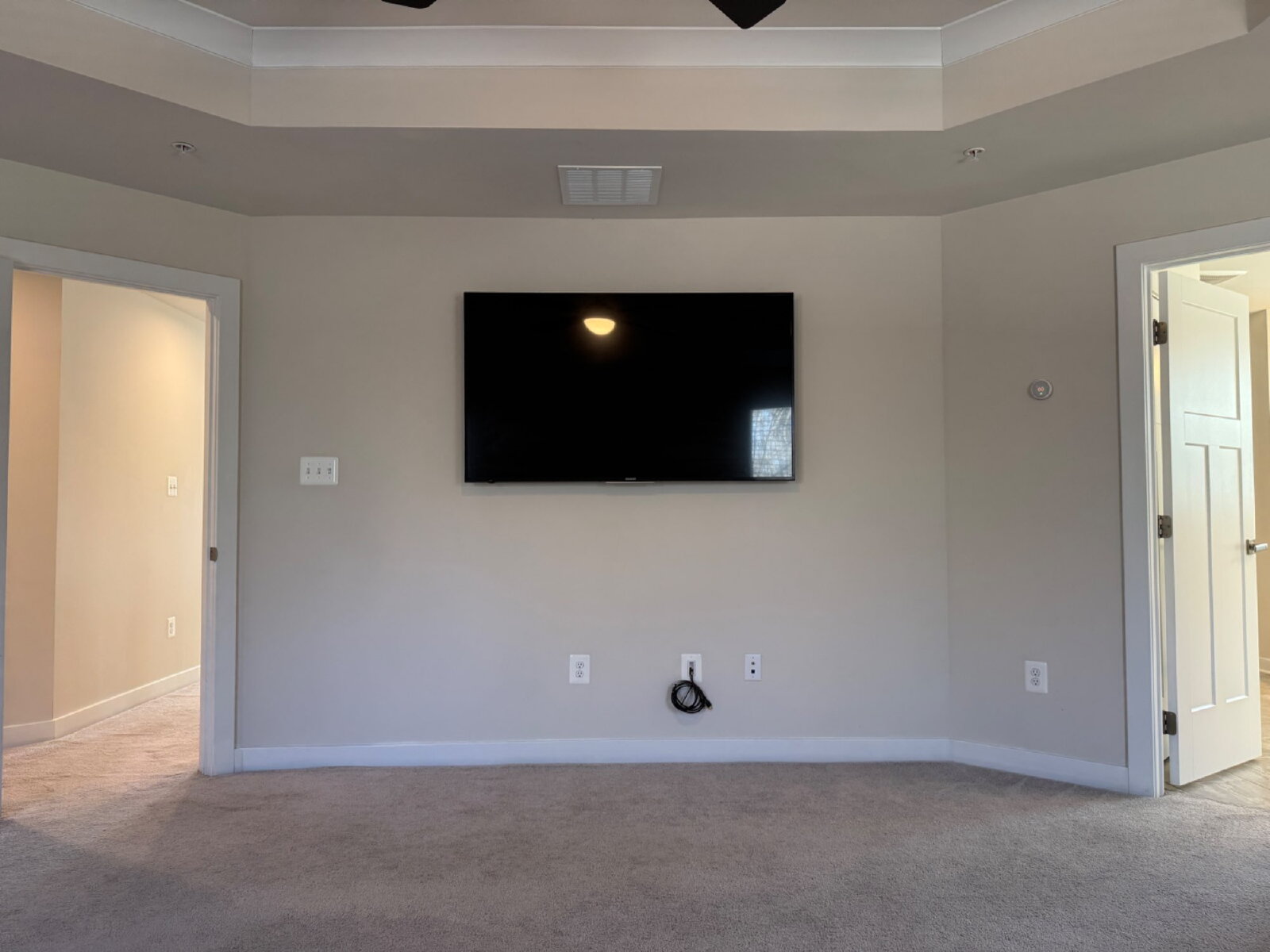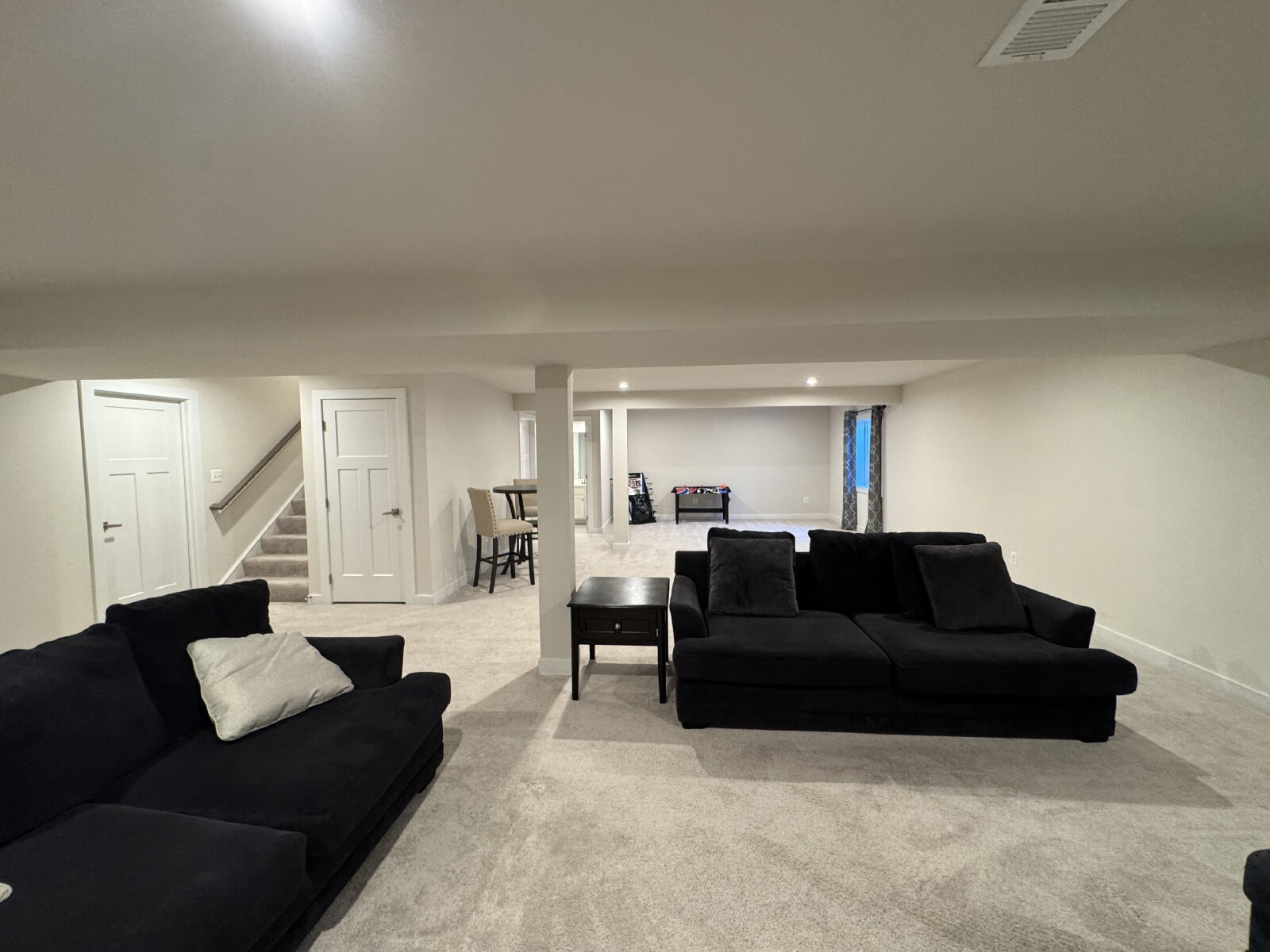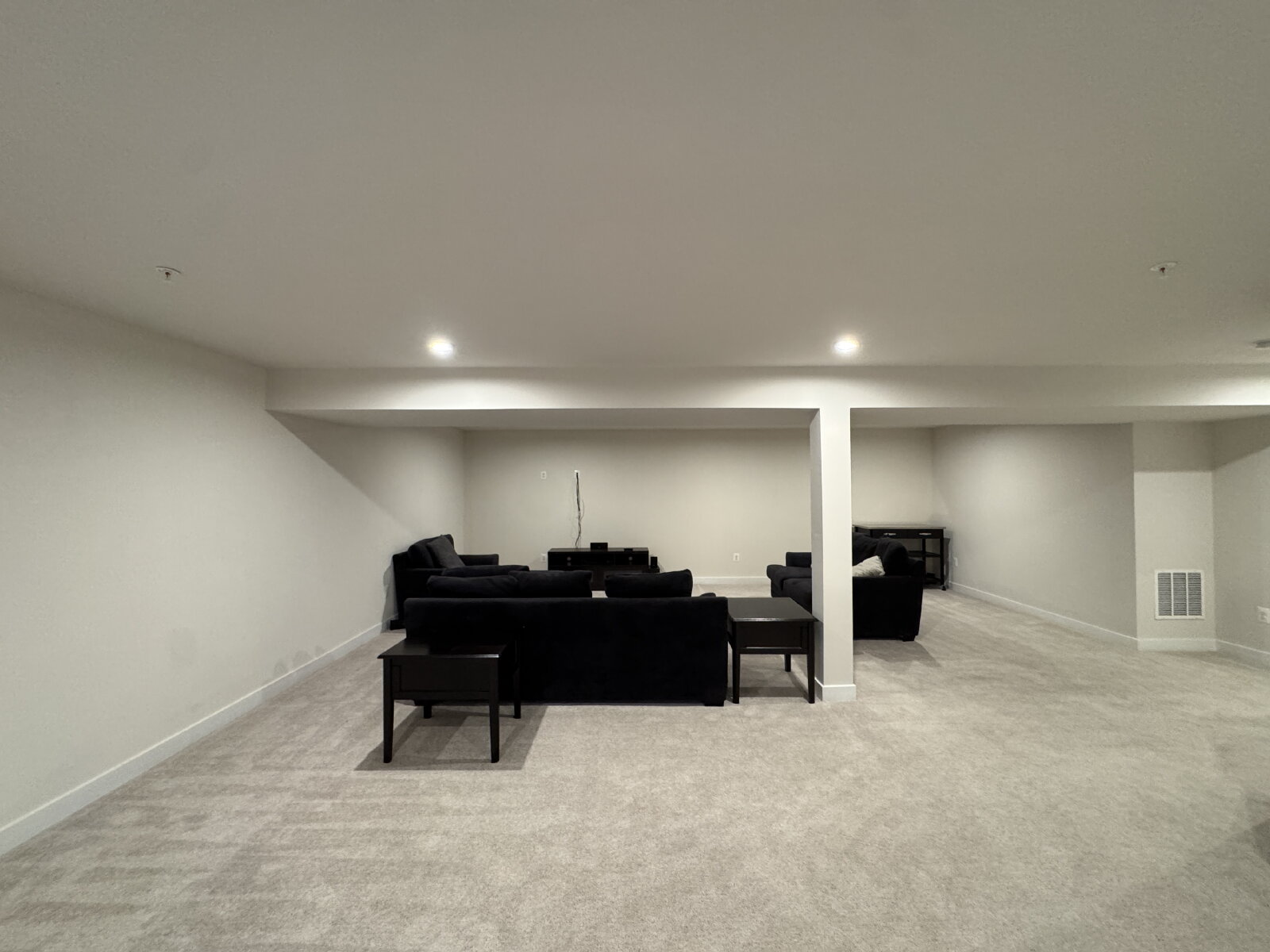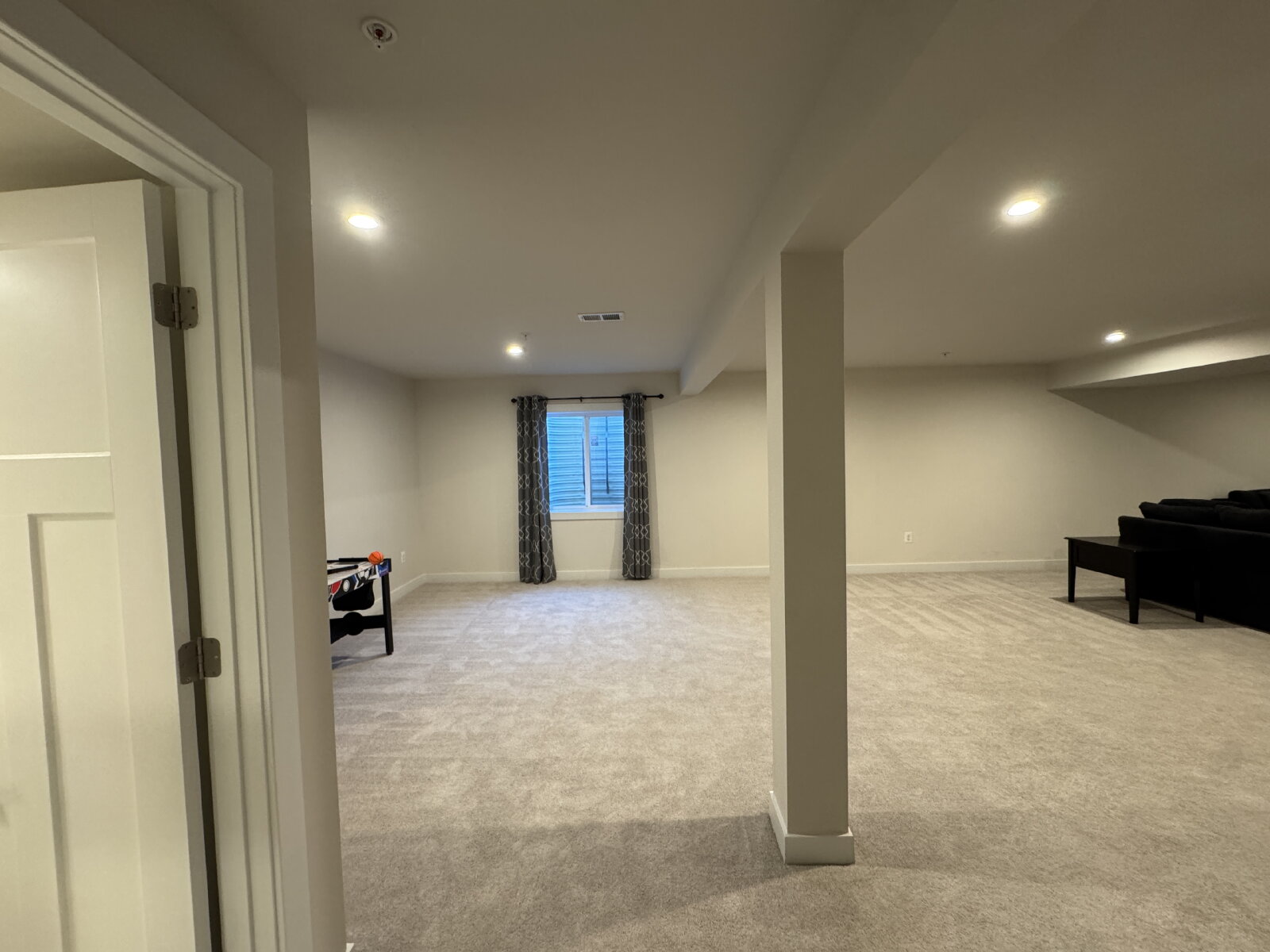 Spacious entertainment/family room furnished—ideal for movie nights, a game room, or extra living space