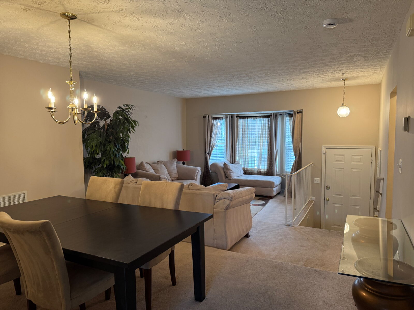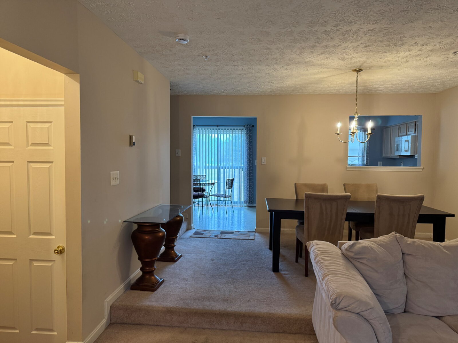 Gorgeous three-level townhome offering spacious and comfortable living. The main level features a bright living room, formal dining area, and a convenient half bathroom. The kitchen offers ample cabinet space and is finished in light, neutral colors, creating a bright and welcoming atmosphere.
